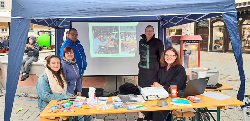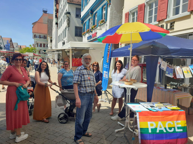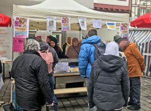 Großer Beliebtheit erfreute sich der gemeinsame Stand der Caritas und Diakonie auf dem Interkulturellen Markt (08.09.2023) in Biberach. Hier wurde die breite Palette der Ökumenischen Migrationsarbeit vorgestellt. Zudem wurde noch der Aktionstag der Migrationsberatung für Erwachsene durchgeführt, um auf die️ Kürzungen von 30% im Bundeshaushalt hinzuweisen.