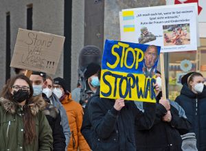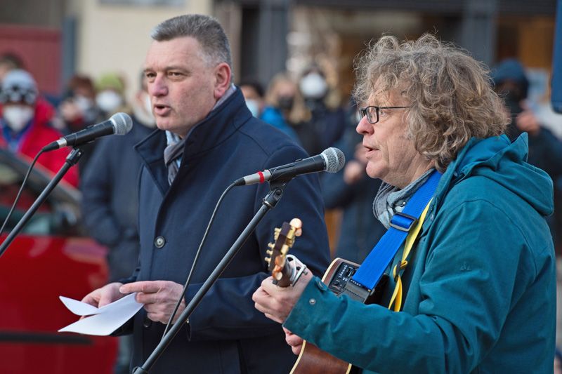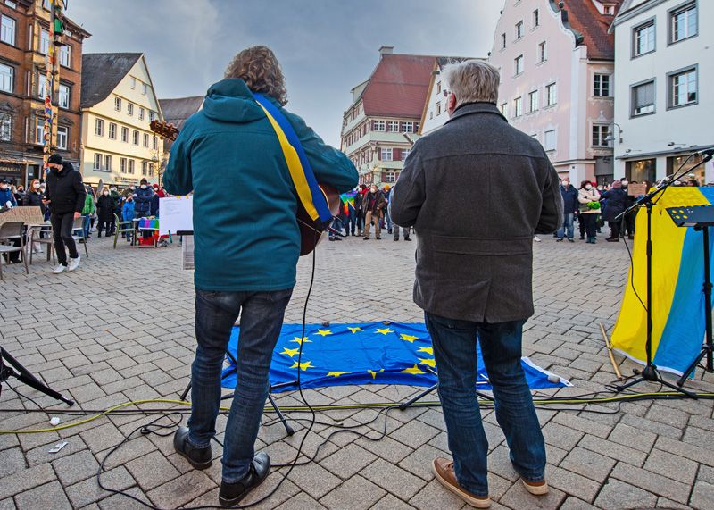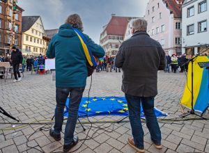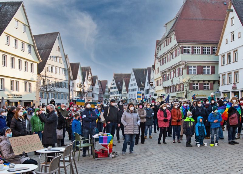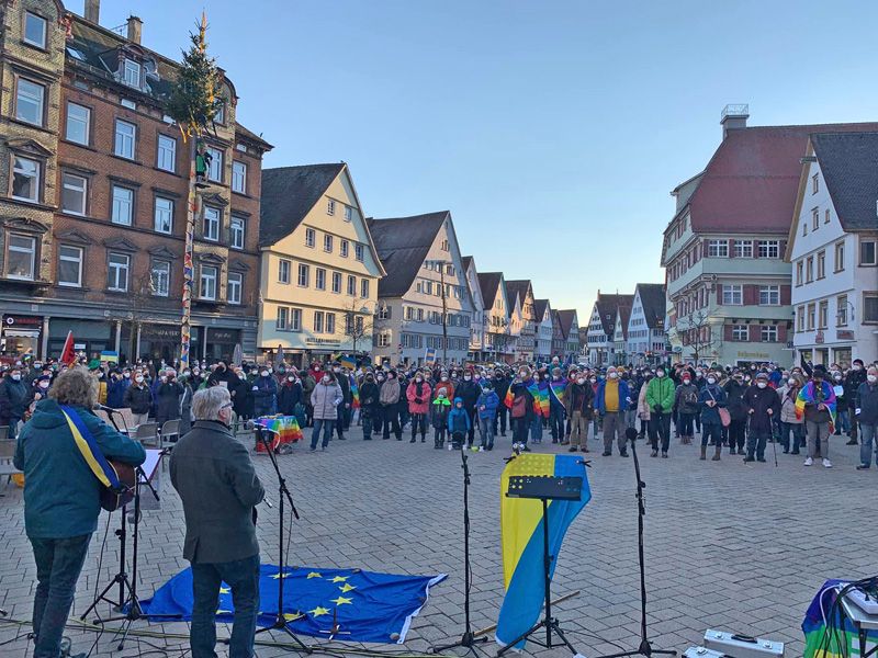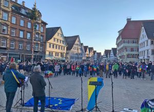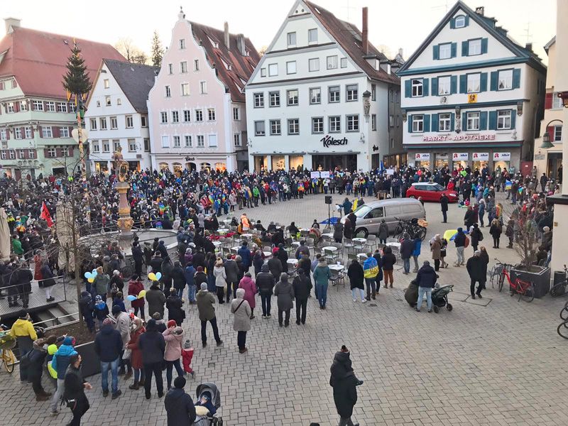 28.02.2022: Mahnwache für den Frieden und gegen den Krieg in der Ukraine auf dem Marktplatz in Biberach