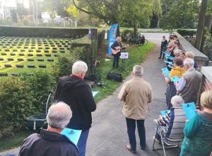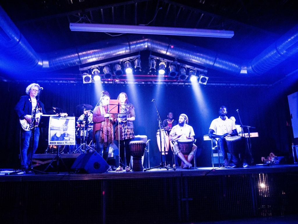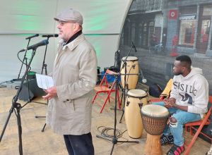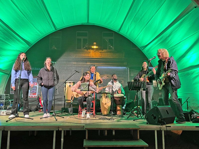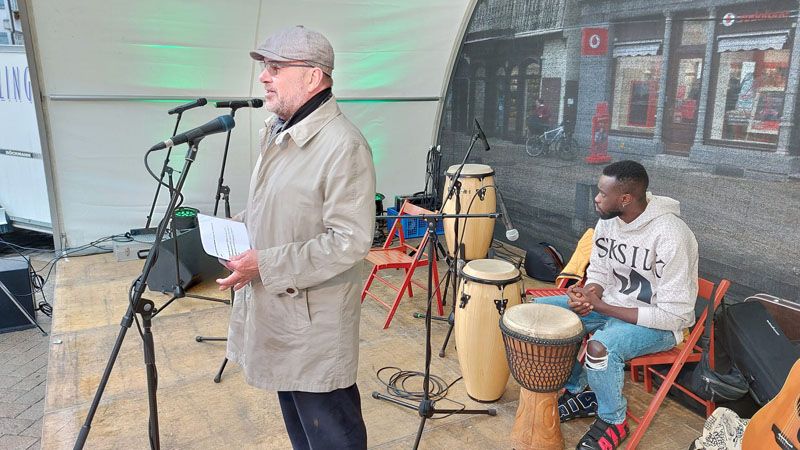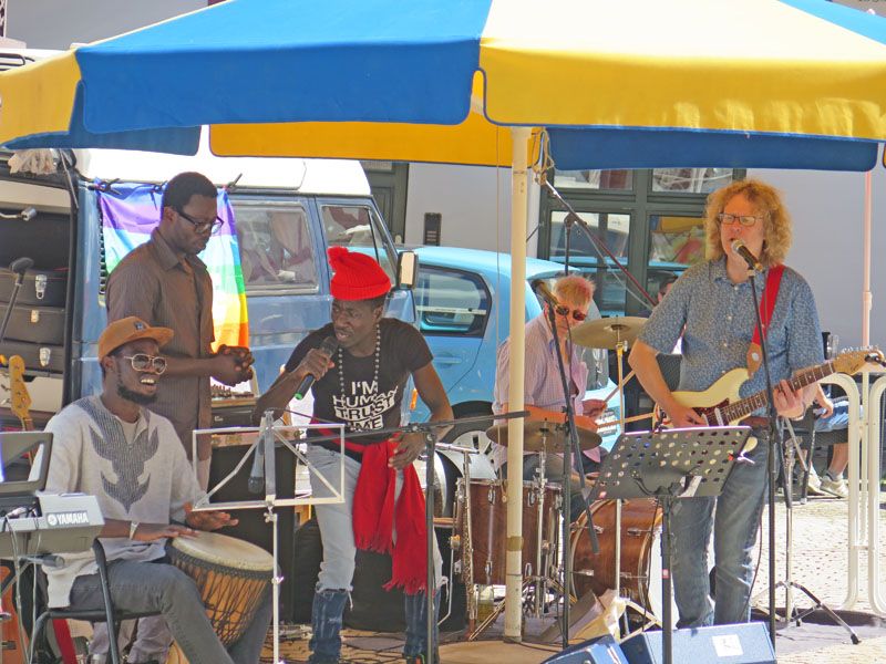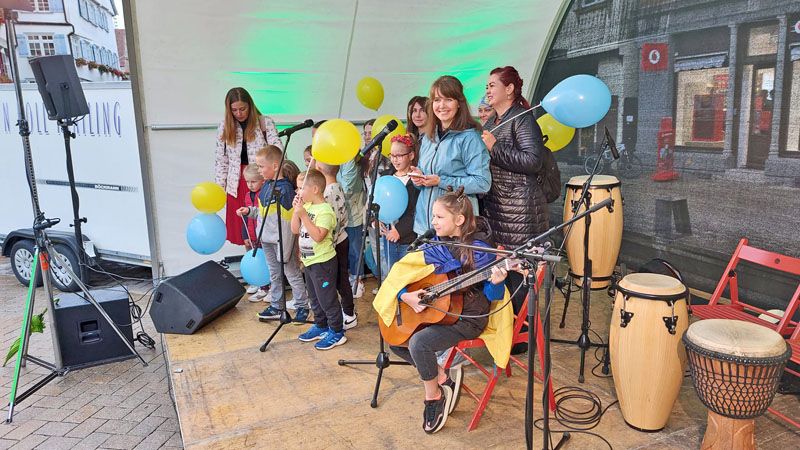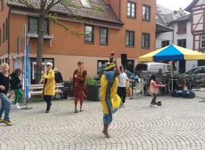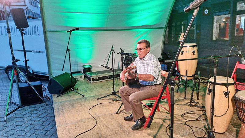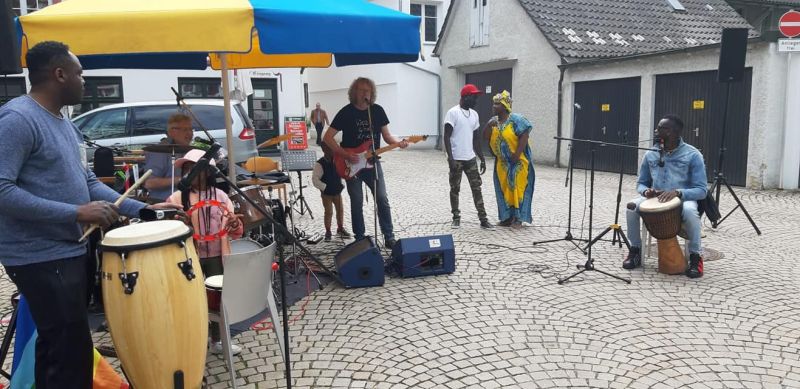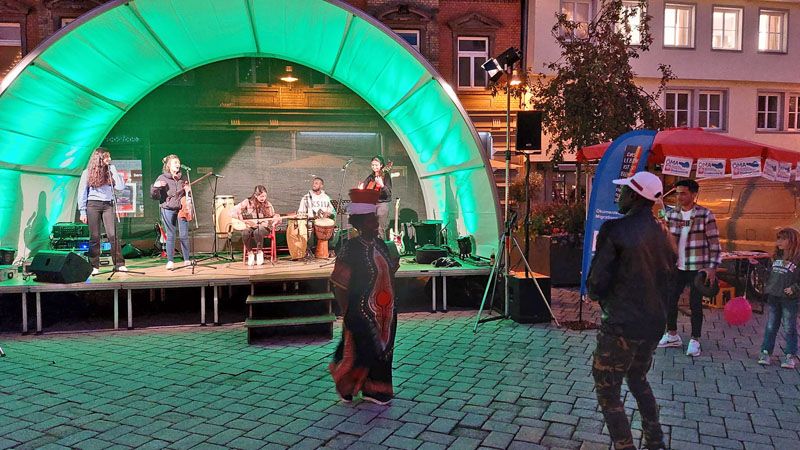 Trotz nicht ganz so gutem Wetter wieder mal ein ganz besonderer Abend. Der interkulturelle Markt am 16.9.2022 auf dem Biberacher Marktplatz. Bunt und tolerant. Und viel Musik. Von den Wakka Sisters, vom Meister der Zaz, Gani Cakmak, von Assan, Cebol, Modou und Aja. Ein Feuertanz mit Amina. Und sehr berührend, Mütter und Kinder aus der Ukraine singen ukrainische Folk- und Popsongs. Die ÖMA war vertreten mit einem Info-Stand und organisierte die Kulturbühne. „Imagine all the People, living live in Peace“.