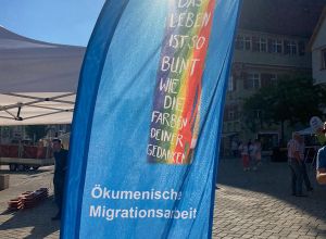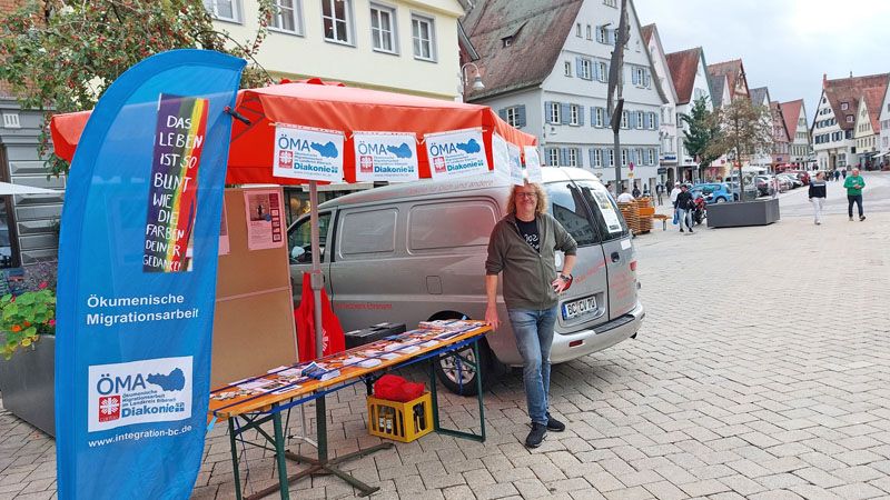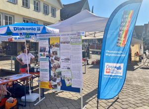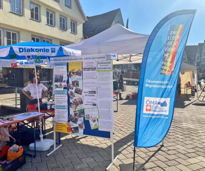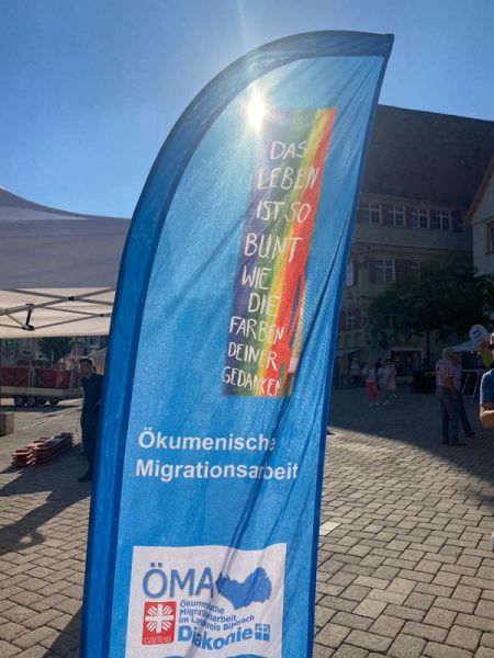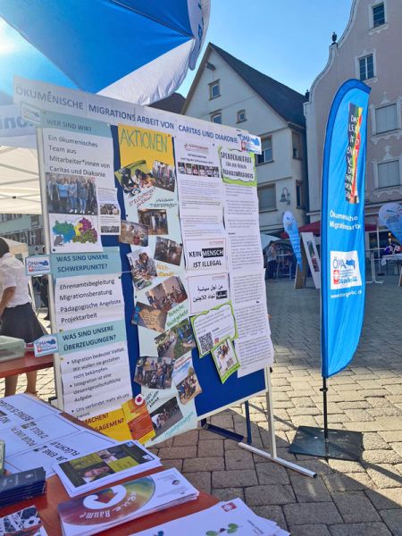„Trotz mäßigen Wetters erfreute sich der gemeinsame Stand der Caritas und Diakonie auf dem Interkulturellen Markt in Biberach . Hier wurde die breite Palette der Ökumenischen Migrationsarbeit vorgestellt. Zudem wurde noch der Aktionstag der Migrationsberatung für Erwachsene durchgeführt, um auf den wachsenden Bedarf hinzuweisen.“