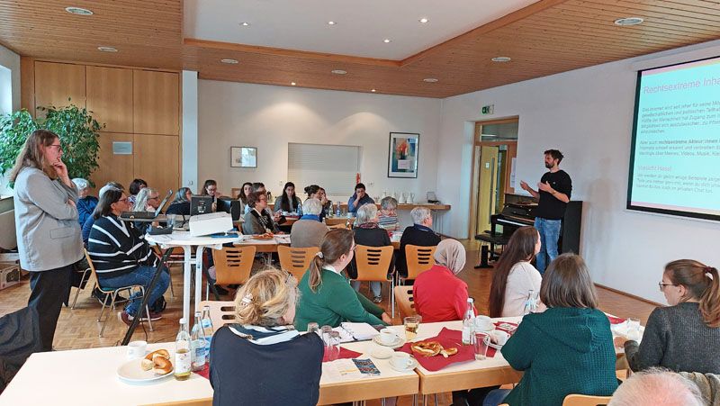 Unter dem Leitgedanken "Asylrecht = (ein) Menschenrecht? Gemeinsam Chancen erkennen - Die aktuelle asylrechtliche und politische Lage im Fokus" boten zwei herausragende Referenten wertvolle Einblicke. Joachim Glaubitz vom Caritasverband der Diözese Rottenburg-Stuttgart hielt den Hauptvortrag „Schuld sind die Geflüchteten?!“. Dort setzte er seinen Fokus auf die Macht der Bilder in der populistischen Debatte zum Thema Flucht. Im anschließenden Workshop zeigte der Rechtsassessor und Projektmitarbeiter beim Flüchtlingsrat BW Sebastian Röder konkrete Handlungsmöglichkeiten auf, im Fall einer drohenden Abschiebung. Trotz vieler komplexer Themen war es ermutigend zu sehen, wie viele ehrenamtlich Engagierte sich für Vielfalt und Gerechtigkeit im Landkreis Biberach stark machen.