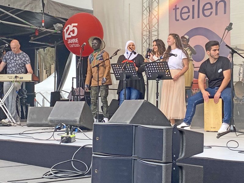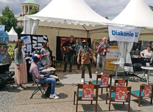 Auftritt auf der großen Caritas-Bühne und unplugged Session am Diakonie Stand