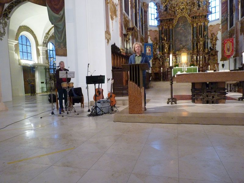 Der Gottesdienst wurde gemeinsam mit Ehrenamtlichen der ÖFA vorbereitet und durchgeführt. Im Gottesdienst haben zwei Menschen von ihren Fluchterfahrungen berichtet; eine ältere Dame, die sich noch sehr gut und detailliert an die eigene Flucht und Vertreibung im Jahr 1945 erinnern konnte, und wie es ihr und ihrer Familie dann als „Flüchtlinge“ in Oberschwaben ging; sowie ein junger Syrer, der vor fünf Jahren auch hier seine neue Heimat gefunden hat.