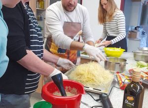 Was ist das Rezept für einen richtig schönen Abend? Wenn viele verschiedene Menschen in eine geräumige Küche kommen, um voller Tatendrang und Neugierde neue Rezepte auszuprobieren und sich dabei gegenseitig kennen zu lernen und tolle Einblicke in die syrische Esskultur zu bekommen.