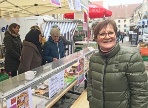 24.02.2023: Spendensammelaktion des Offenen Frauentreff DEINE ZEIT auf dem Wochenmarkt in Riedlingen