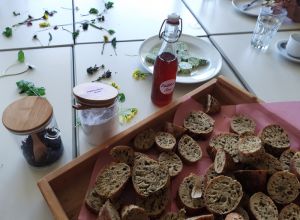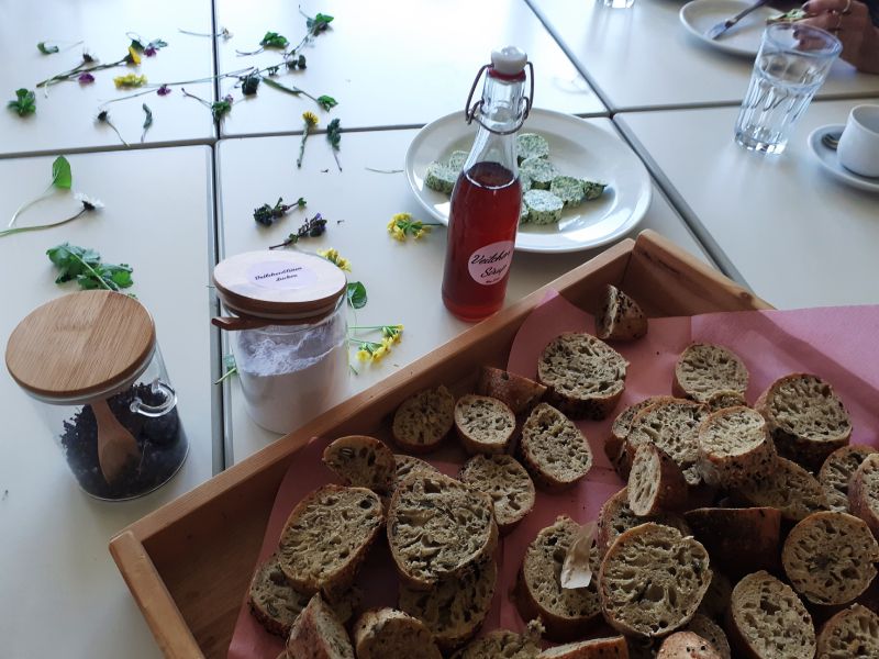 Für das leibliche und seelische Wohl sorgte Sandra Nechwatal mit neuen Frühlingskreationen – wir durften selbst eine Schlüsselblumensalbe und ein Veilchentonikum nach einem Rezept der Kaiserin Sissi herstellen. Selbstgemachte Sauerteigseelen mit Brennesselsamen und Bärlauchbutter, sowie Limonade aus Veilchensirup ließen uns im Frühling schwelgen.“