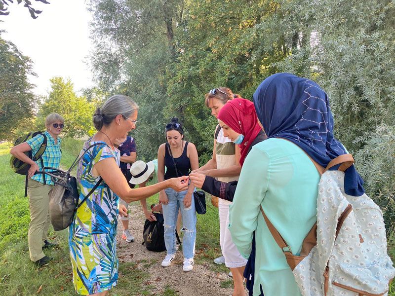 10.08.2020: Heil- und Wildkräuterwanderung des Offenen Frauentreffs DEINE ZEIT Riedlingen mit Kräuterfrau Sabine Setz in den Mißmahlschen Anlagen mit vielen Informationen zu Heilkräften und Verwendung in der Küche. Es gab viel zu schauen, zu riechen und zu schmecken!