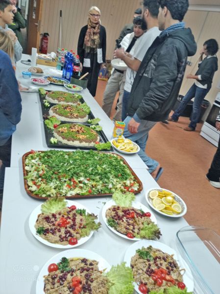 Der syrische Kochabend, der am 15. Mai 2024 in Ummendorf stattfand, war ein voller Erfolg! Rund 20 Teilnehmende kamen in den Genuss von Spezialitäten der syrischen Landesküche. Tabouleh, Baba Ganoush, gefüllte Weinblätter, Basbousa und Molokhyia sorgten für ein unvergessliches Geschmackserlebnis.