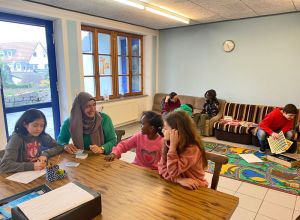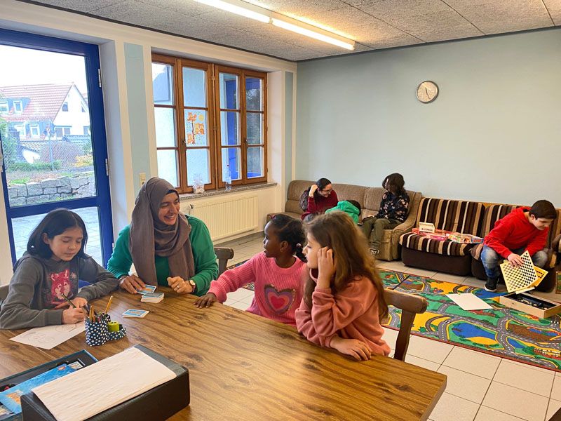 Die Gruppe besteht in der Regel aus maximal 20 Kindern. Die Hälfte der Kinder kommt aus einer Anschlussunterkunft für Geflüchtete, die meisten anderen kommen aus Familien mit Migrationserfahrung oder sind Freunde der Kinder. Das Team besteht aus 3 pädagogischen Fachkräften und 4 ehrenamtlichen Mitarbeiterinnen, insgesamt 7. ( Julia Blessing, Tülay Tekeli, Sonja Steinmann, Dilek Ciftci, Serife Öztürk, Aleyna Ciftci, Gabi Wiest) Alle mitarbeitenden haben Erfahrung mit der Altersstufe der Kinder von 6 bis 11 Jahren.