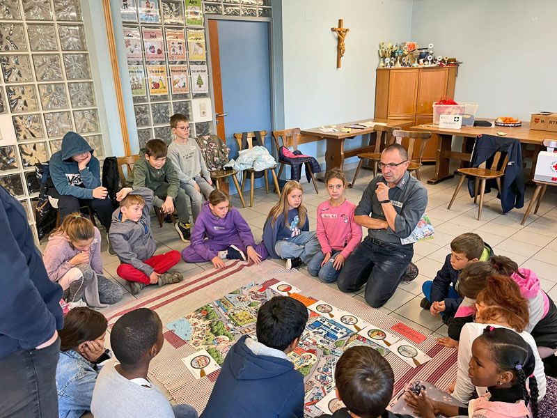 In den Herbstferien erklärt uns Herr Rommel vom DRK Biberach, was Kinder in einem medizinischen Notfall tun können. Kindgerecht hat Herr Rommel mit den Kindern verschiedene Notsituation erarbeitet. Die praktischen Übungen beim Verbinden waren für die Kinder eine wertvolle Experimentierphase.