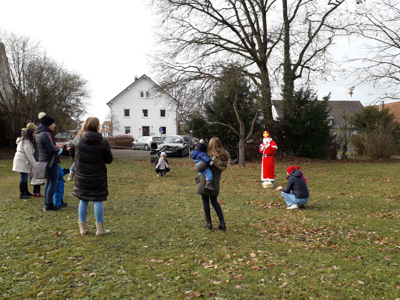 Auch in den Eltern-Kind-Sprachspielgruppen weihnachtet es schon. In der letzten Woche kam sogar der Nikolaus persönlich im Pfarrgarten in Laupheim vorbei, ganz zur Freude von Kindern und Müttern.