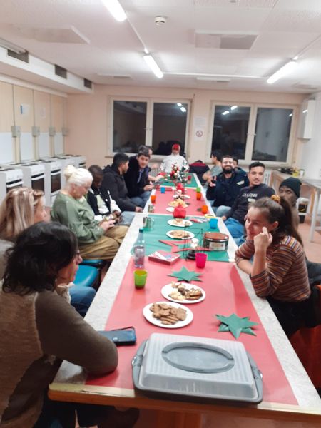 Bei unserer adventlichen Jahresabschlussfeier in Bad Schussenried am 17. Dezember feierten Geflüchtete der Unterkunft mit Ehrenamtlichen zusammen das Jahresende. Bei Punsch, selbstgemachten Plätzchen und schönen, von den Männern selbstgebastelten Sternen saßen wir in geselliger Runde und alle hatten Spaß bei den modernen und traditionellen Tänzen.