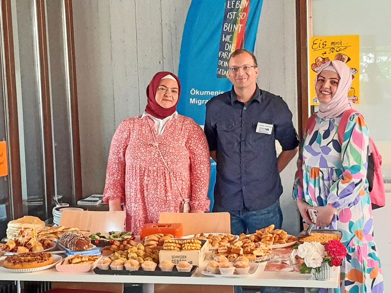 Am 18.06.2023 fand das Fest der Gemeinde Dreifaltigkeit in Biberach/Mittelberg statt. Hier beteiligte sich die Ökumenische Migrationsarbeit und der Helferkreis Mittelberg mit einem vielfältigen kulinarischen Angebot, unter anderem aus den Ländern Türkei, Syrien, Georgien und der Ukraine. Dieses wurde von den Bewohnern der GU Klockhstraße und Wetterkreuzstraße zur Verfügung gestellt.
