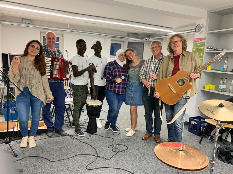 Die Interkulturelle Musikband der Ökumenischen Migrationsarbeit von Caritas und Diakonie aus Biberach bereitet sich auf ihr Konzert beim Katholikentag in Stuttgart vor