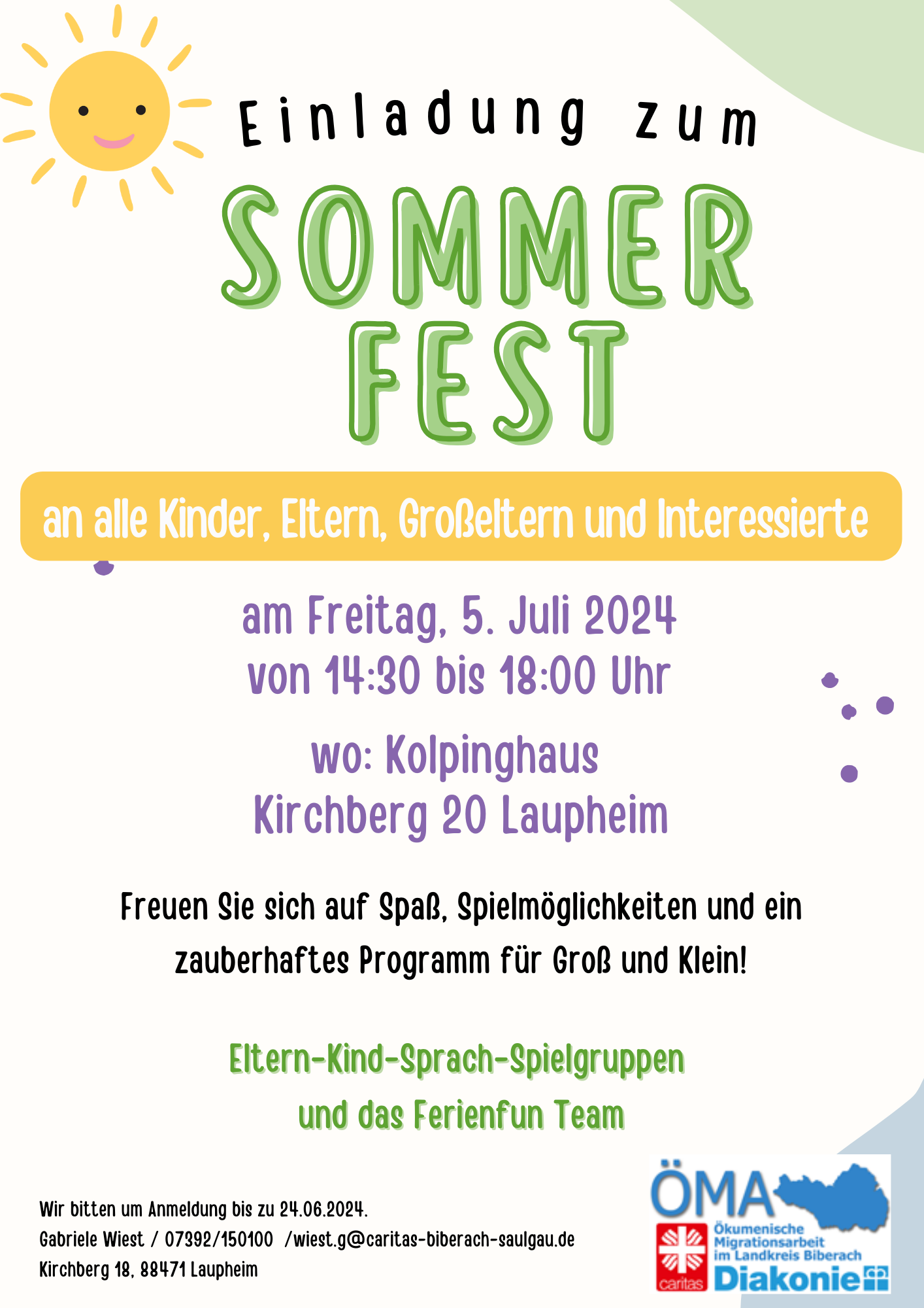 Anmeldung bitte bis 24.06.24 bei Gabriele Wiest:07392/150100, wiest(at)caritas-biberach-saulgau.de