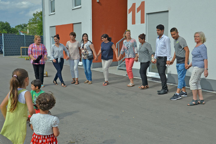 Vier Kinder einer tschetschenischen Familie hatten einen Tanz vorbereitet, welchen sie unter Applaus vorführten. Obwohl keine Programmpunkte geplant waren, holten einige Geflüchtete eine Lautsprecherbox, ließen arabische Musik laufen und tanzten dazu traditionell. Auch die ehrenamtlichen Helfer ließen sich vom Tanzen mitreißen, sodass bald verschiedene Nationen gemeinsam tanzten.