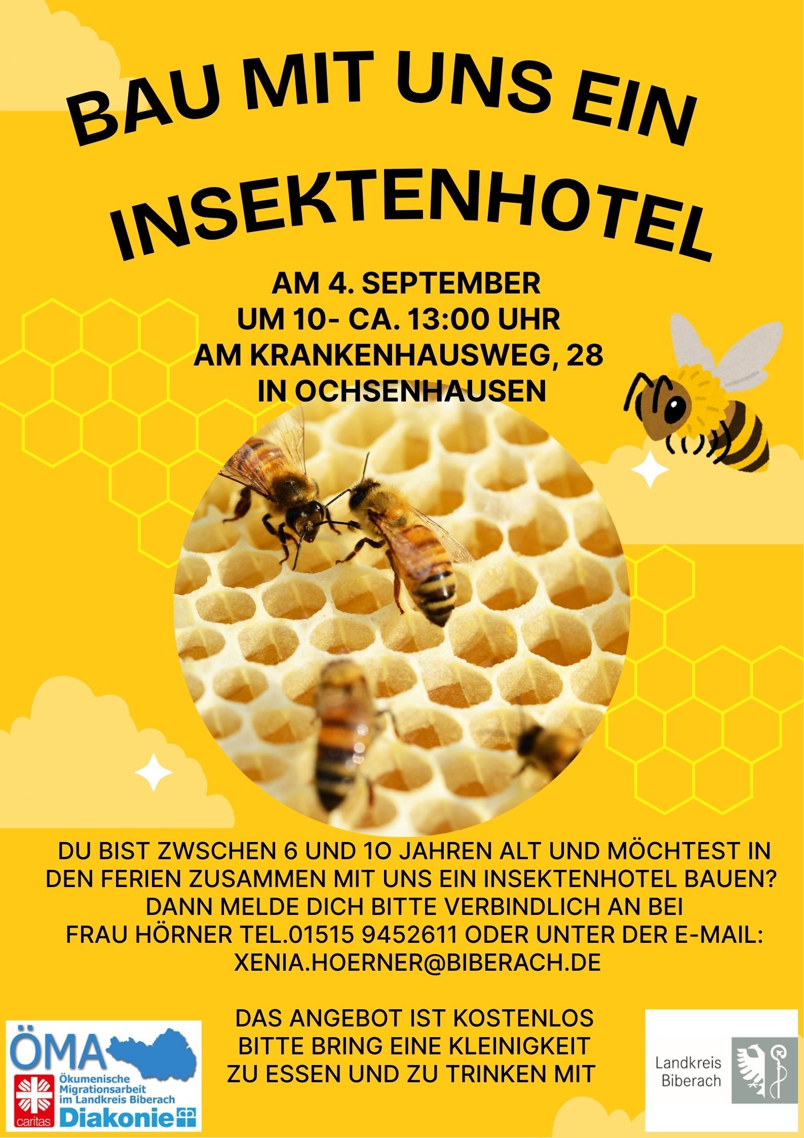 DU BIST ZWSCHEN 6 UND 10 JAHREN ALT UND MÖCHTEST IN DEN FERIEN ZUSAMMEN MIT UNS EIN INSEKTENHOTEL BAUEN?
