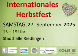 Bereits zum dritten Mal findet unser Herbstfest in der Stadthalle Riedlingen statt und es wartet wieder ein buntes Programm auf die Besucher*innen! Ob eine Hüpfburg für Kinder, ein abwechslungsreiches Bühnenprogramm oder ein internationales Buffett – es ist für alles gesorgt! Mehr Infos finden Sie im Anhang.