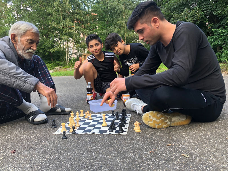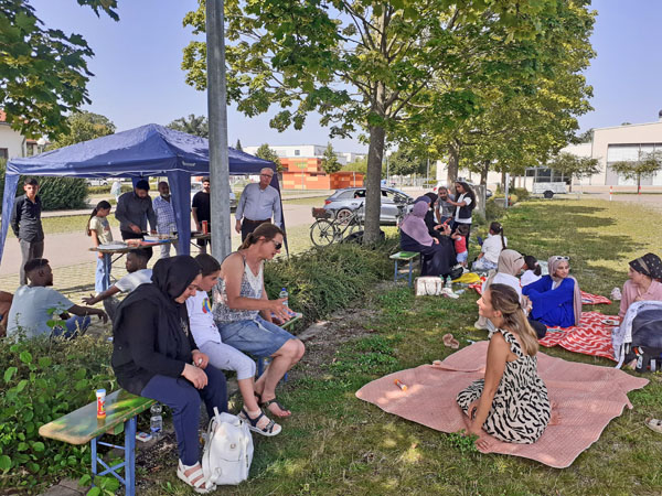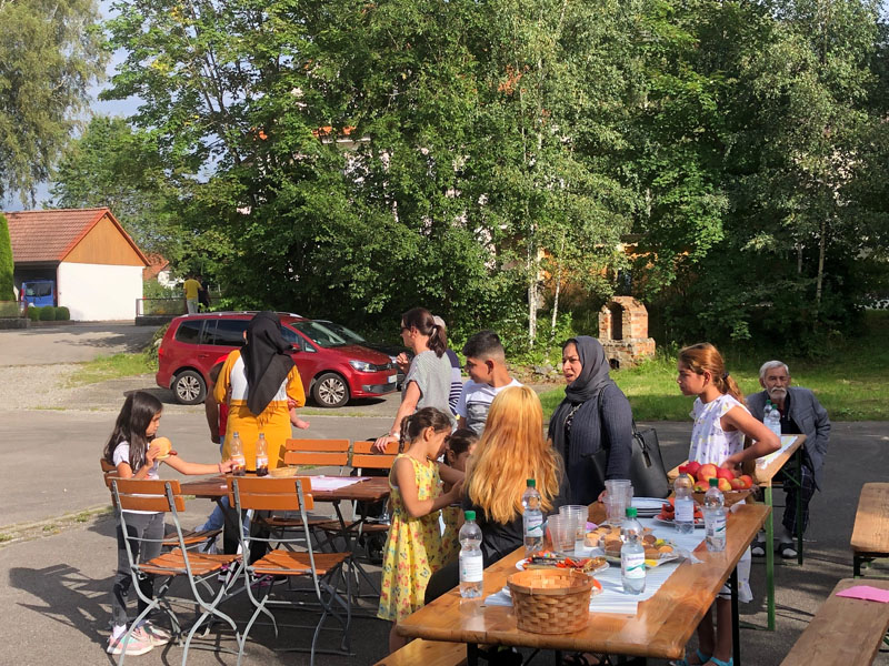Seit Beginn der Pandemie durften die Ehrenamtlichen vom Unterstützerkreis für Flüchtlinge die Gemeinschaftsunterkunft im Waidägle nicht mehr betreten. Umso mehr freuten sich die Bewohner aus Afghanistan, Iran, Gambia, dem Irak und anderen Ländern über das spontan am sonnigen Spätnachmittag des 19. August anberaumte kleine Grillfest im Hof. Sybille Steib vom Fachbereich Flüchtlinge der Gemeindeverwaltung, hatte mit Regina Halder vom (Landratsamt) und Elisa Sachs (Diakonie) alles organisiert. Neben Mitgliedern vom Unterstützerkreis mischten sich auch einige Betreiber des coronabedingt seit Monaten ruhenden Begegnungscafés der Evangelischen Versöhnungskirche unter die Feiernden. Als nach gut drei Stunden des lebhaften Austausches die Tische wieder abgeräumt wurden, kamen die Grundschüler Adam und Momam, die mit ihren Familien aus dem Irak beziehungsweise einem Palästinensischen Flüchtlingscamp im Libanon nach Ummendorf gekommen waren, strahlend zu den Veranstaltern: “Dürfen wir etwas fragen? Wann gibt es wieder so ein Fest?“