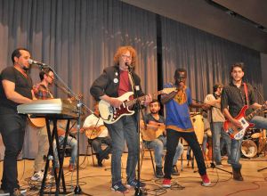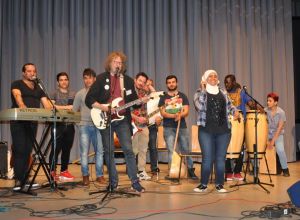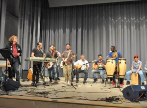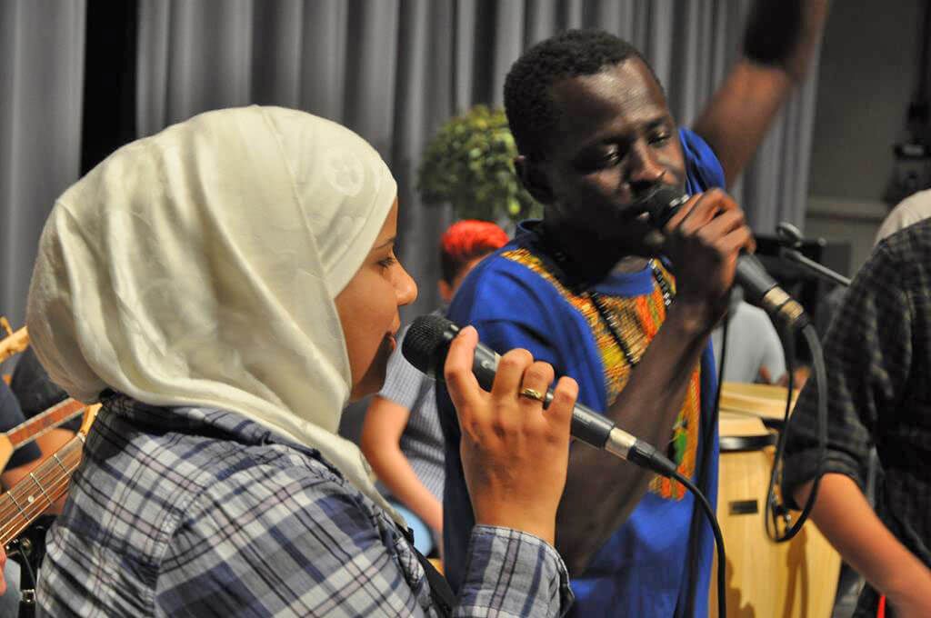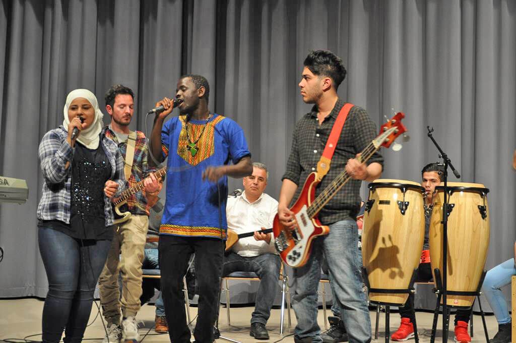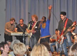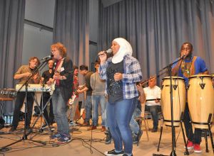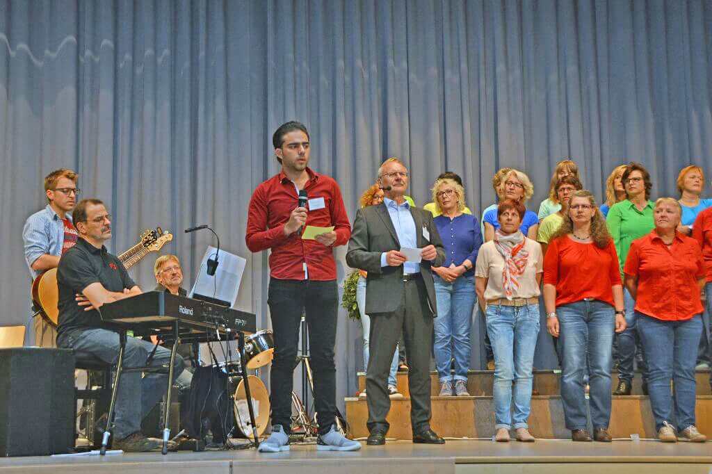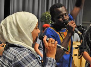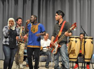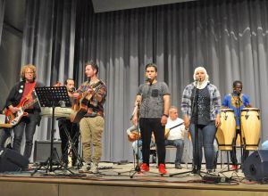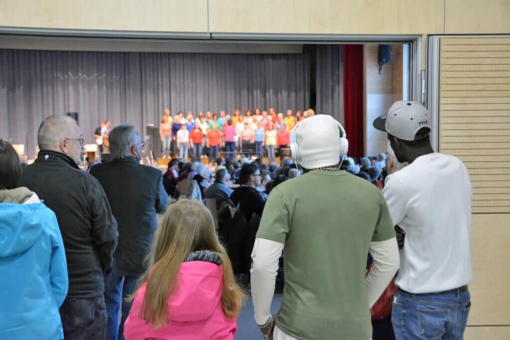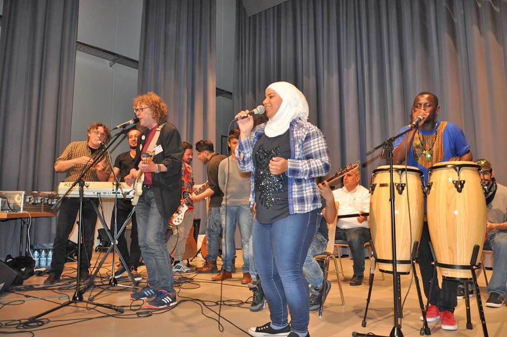 „Schade, dass das Fest schon zu Ende ist“ war einhelliger Tenor der gut 350 Besucher des Interkulturellen Maifestes am 6. Mai 2017 in der Gemeindehalle. Zur Musik der Band International Identity, in der neben Biberachern auch Frauen und Männer aus Syrien, Afghanistan, Iran und Gambia singen und spielen, animierte zum ausgelassenen Mittanzen. Vier Stunden zuvor hatte Moderator Rolf Walter im Namen des Unterstützerkreises für Flüchtlinge Ummendorf die Gäste in der voll besetzten Halle begrüßt. Die Sängerinnen des FIS Chores Rissegg sorgten mit ihren interessant arrangierten Friedensliedern für nachdenkliche Stimmung, luden aber auch zum Mitsingen ein. Vielen Dank der Chorleiterin Monika Lessmeister mit ihren Sängerinnen und Lorenz Lessmeisters Begleitband.
