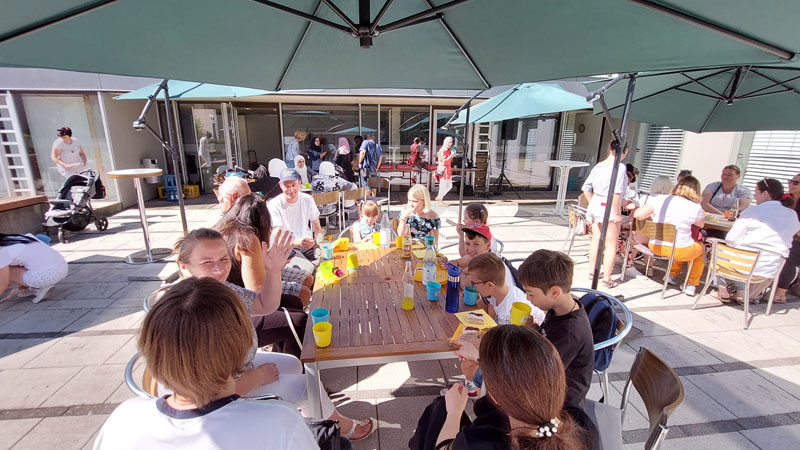 Um auch den Menschen, die erst seit Neuem in Biberach leben eine Gelegenheit zu bieten, an der Freude die während des Biberacher Schützenfestes spürbar ist teilzuhaben, luden Caritas Biberach und Ökumenische Migrationsarbeit zusammen mit der Stadtverwaltung/Integration-Biberach alle zugewanderten oder geflüchteten Menschen gemeinsam mit ihren einheimischen Freunden und Begleitern zu einem zwanglosen „Schützen-Begegnungstreff“ im Anschluss an den „Bunten-Zug“ am Montag, 18. Juli 2022 ein. Zuerst wurde gemeinsam der „Bunte Zug“ angeschaut, danach gab es im Hinterhof der Caritas Biberach ein Begegnungstreffen mit Getränken und „Schützenkrapfen“. Es wurde auch gesungen, natürlich das „Schützenlied“, die Hymne der Biberacher, aber auch ein Lied aus der syrischen Stadt Aleppo.