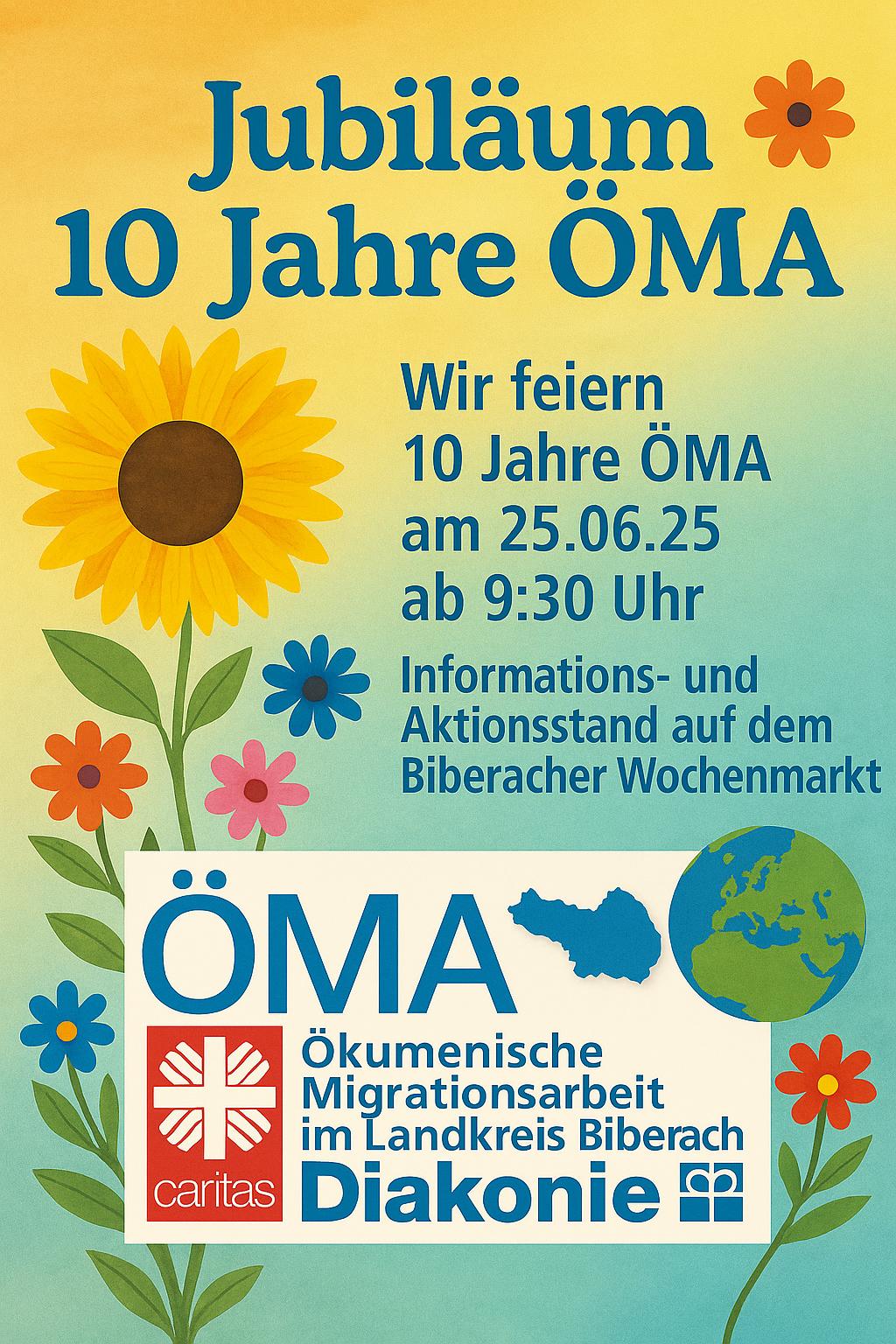 Am Mittwoch, den 25. Juni 2025, lädt die Ökumenische Migrationsarbeit (ÖMA) im Landkreis Biberach und Dekanat Saulgau anlässlich ihres 10-jährigen Bestehens sowie zum Gedenktag für die Opfer von Flucht und Vertreibung zu einem besonderen Stand auf dem Wochenmarkt in Biberach ein.